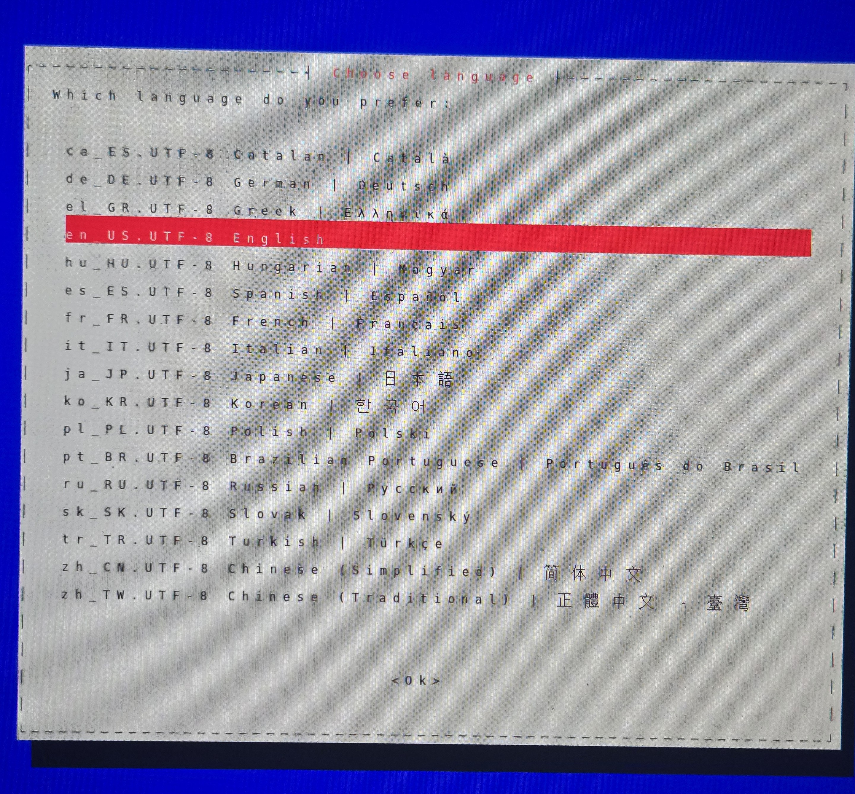 - Once it is loaded you will see the language selection menu. Use arrow keys to select and press enter to