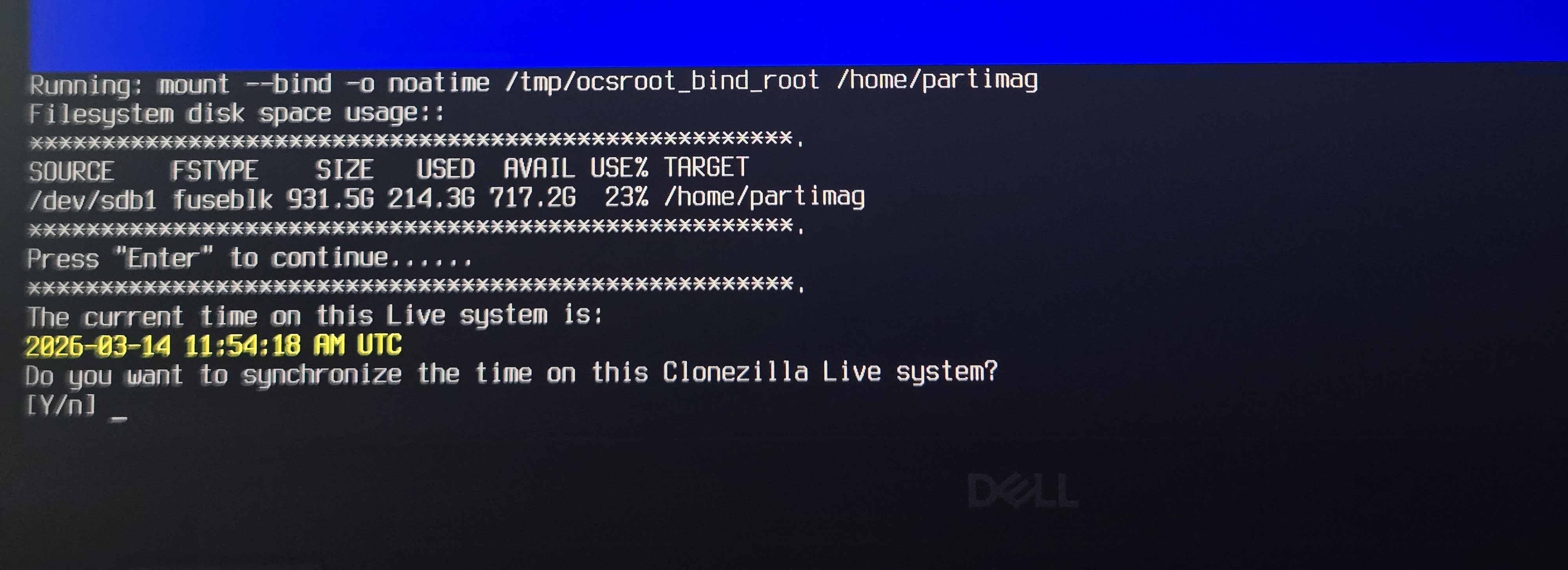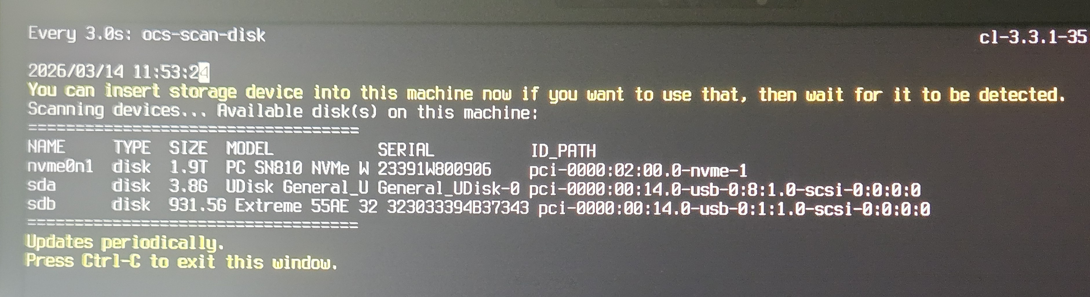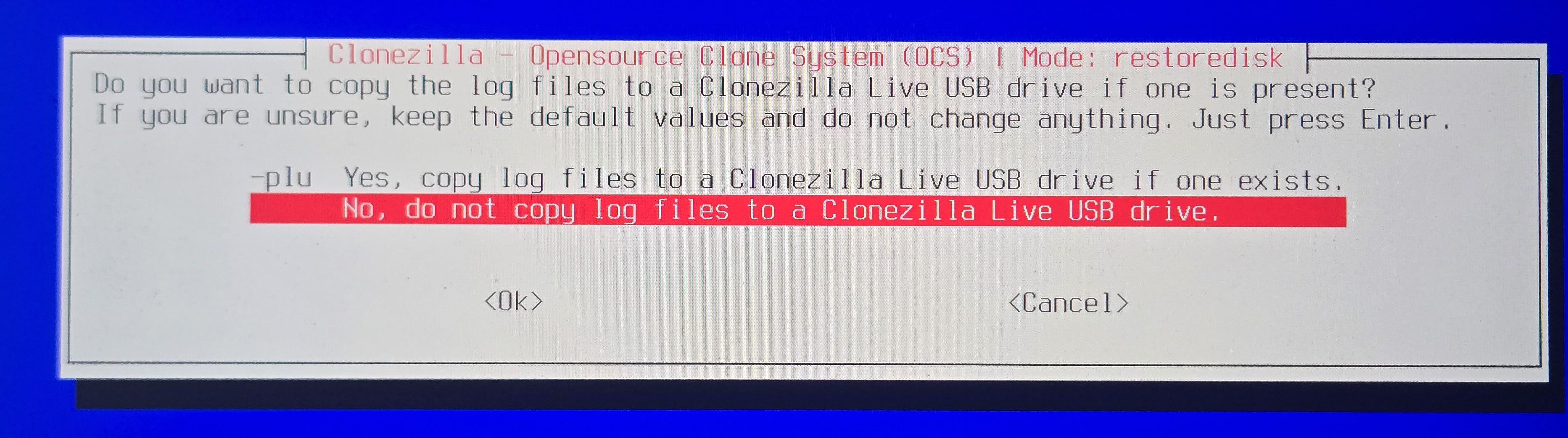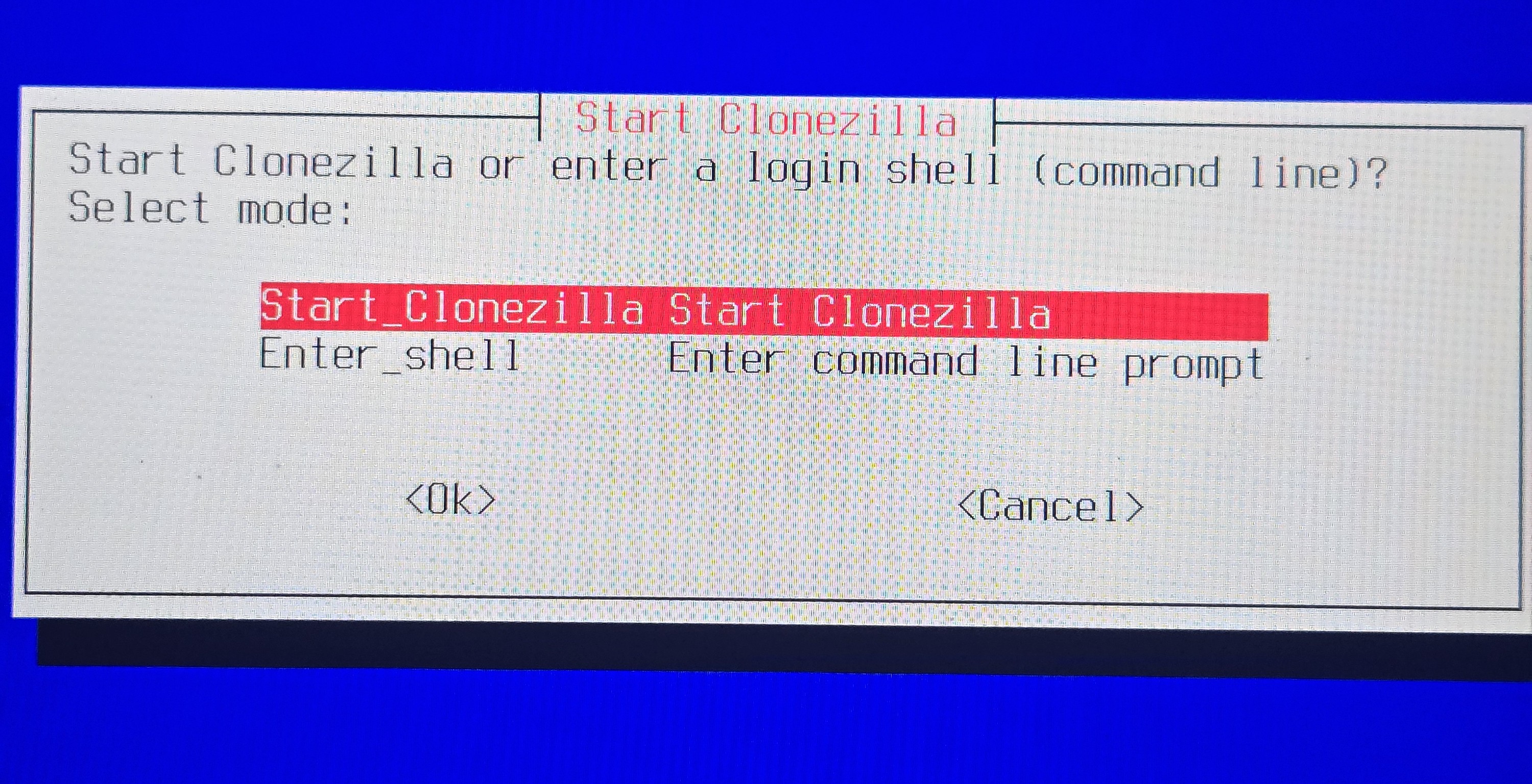 - Plug in the Clonezilla bootable USB drive.