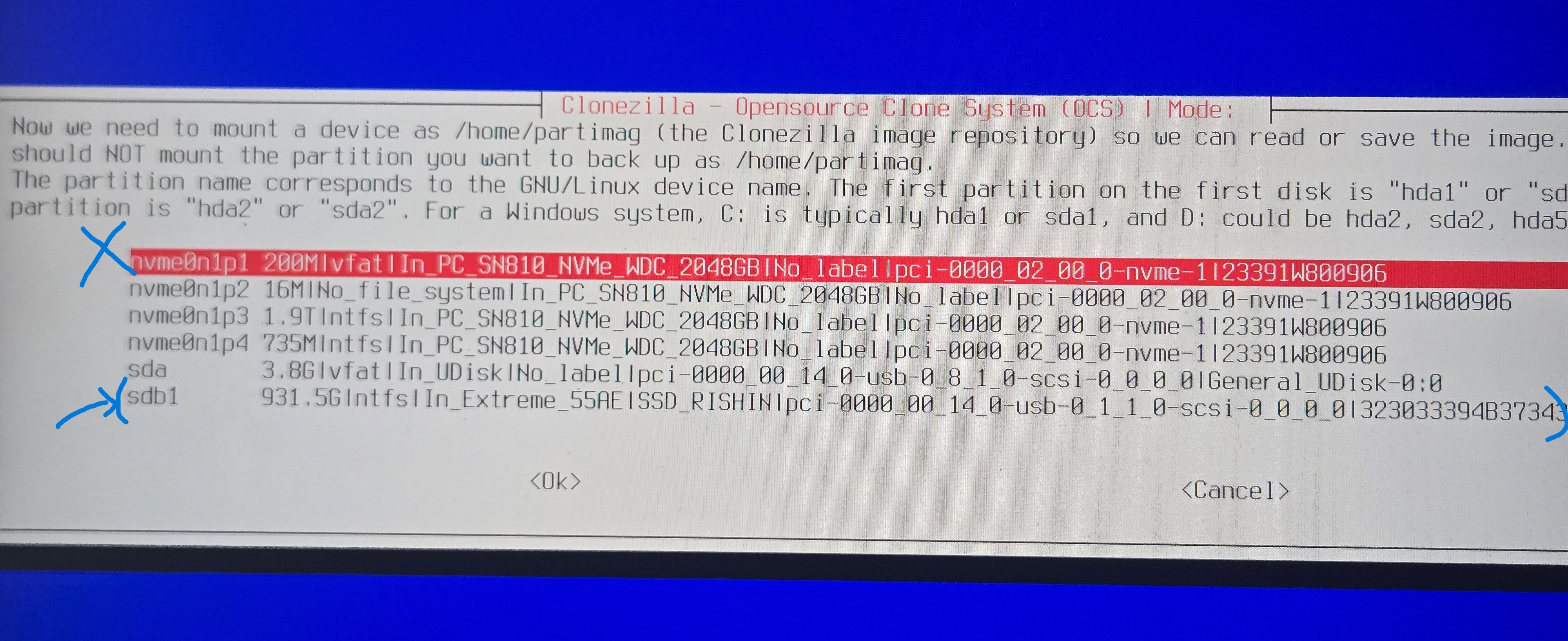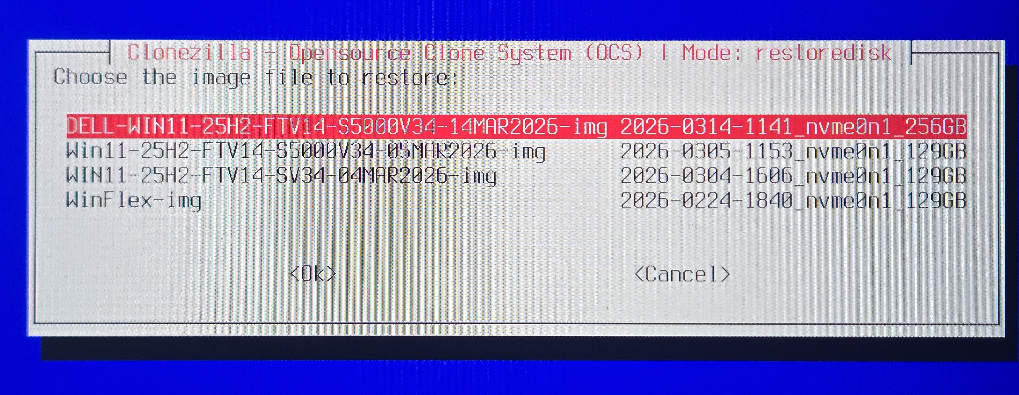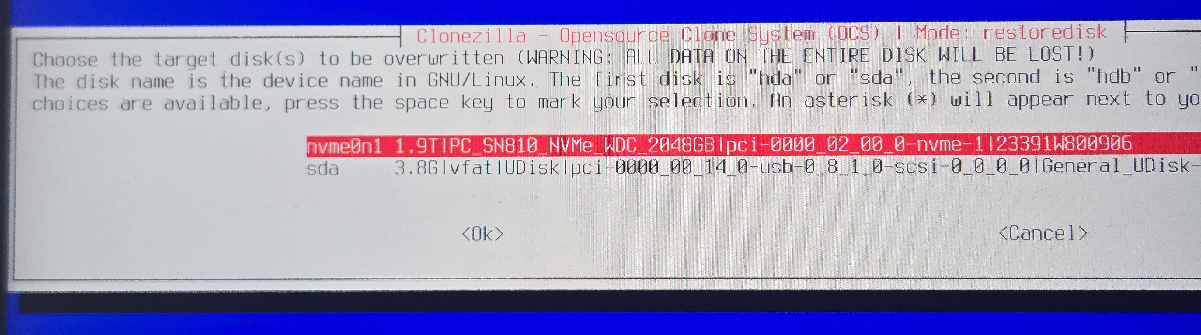 - Select the correct nvme drive to restore the image to. (#refer step 8)