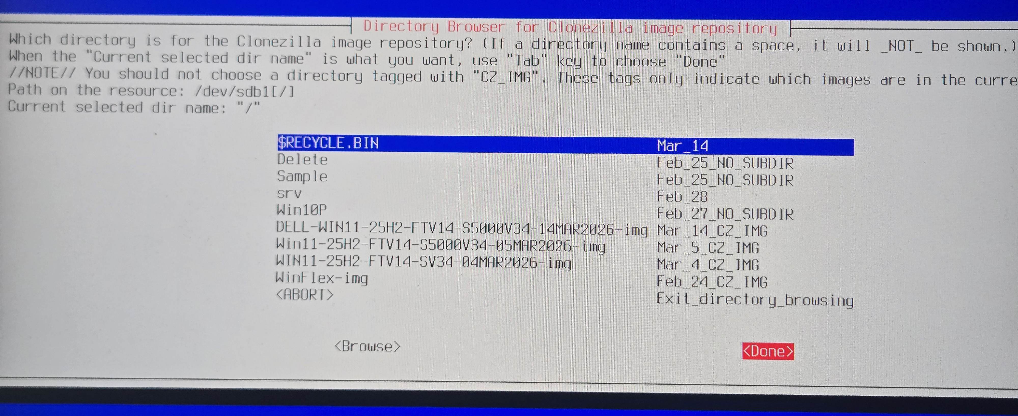 - When are asked to select the directory containing the image, use tab to select Done and press Enter. No need
