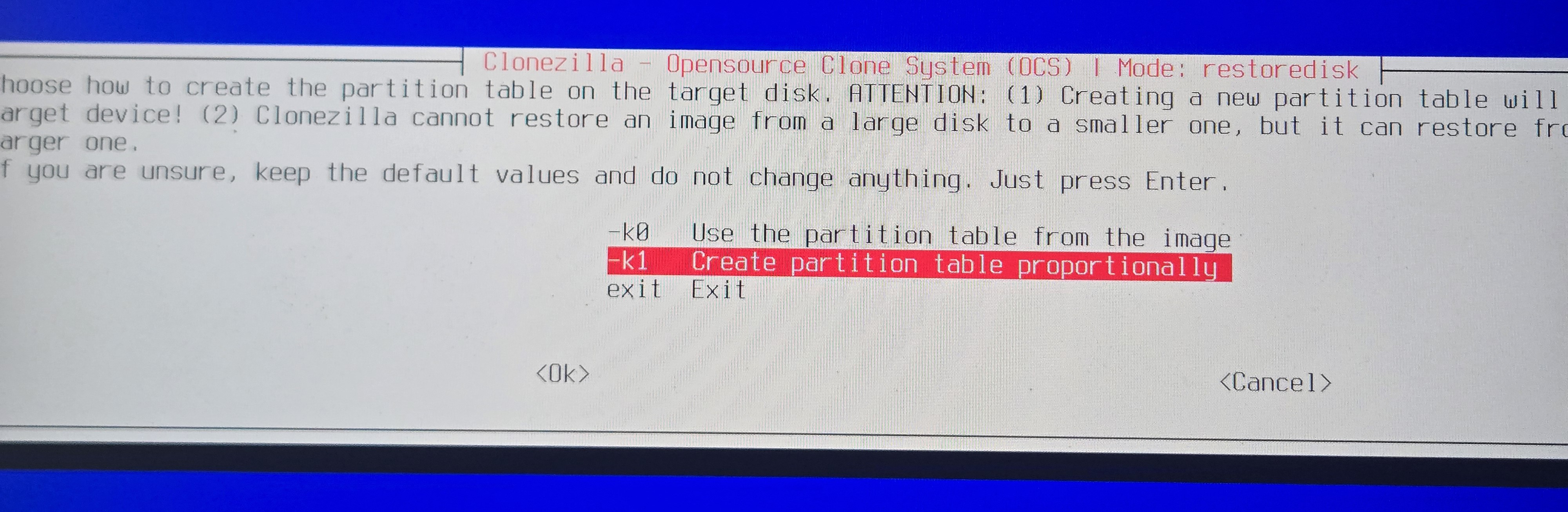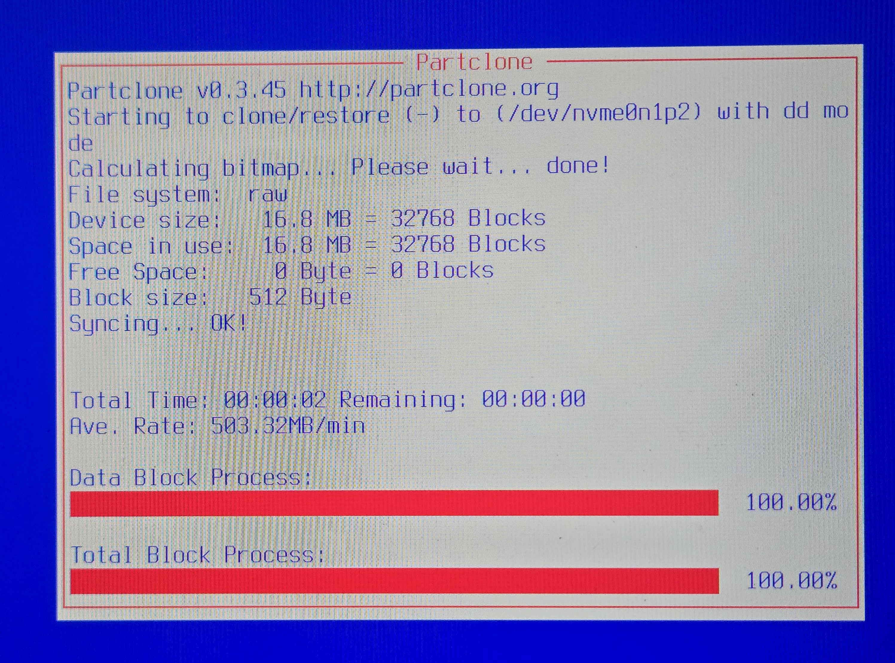 - Wait for partclone to finish recovering the image to the drive. It may take about 5 minutes.