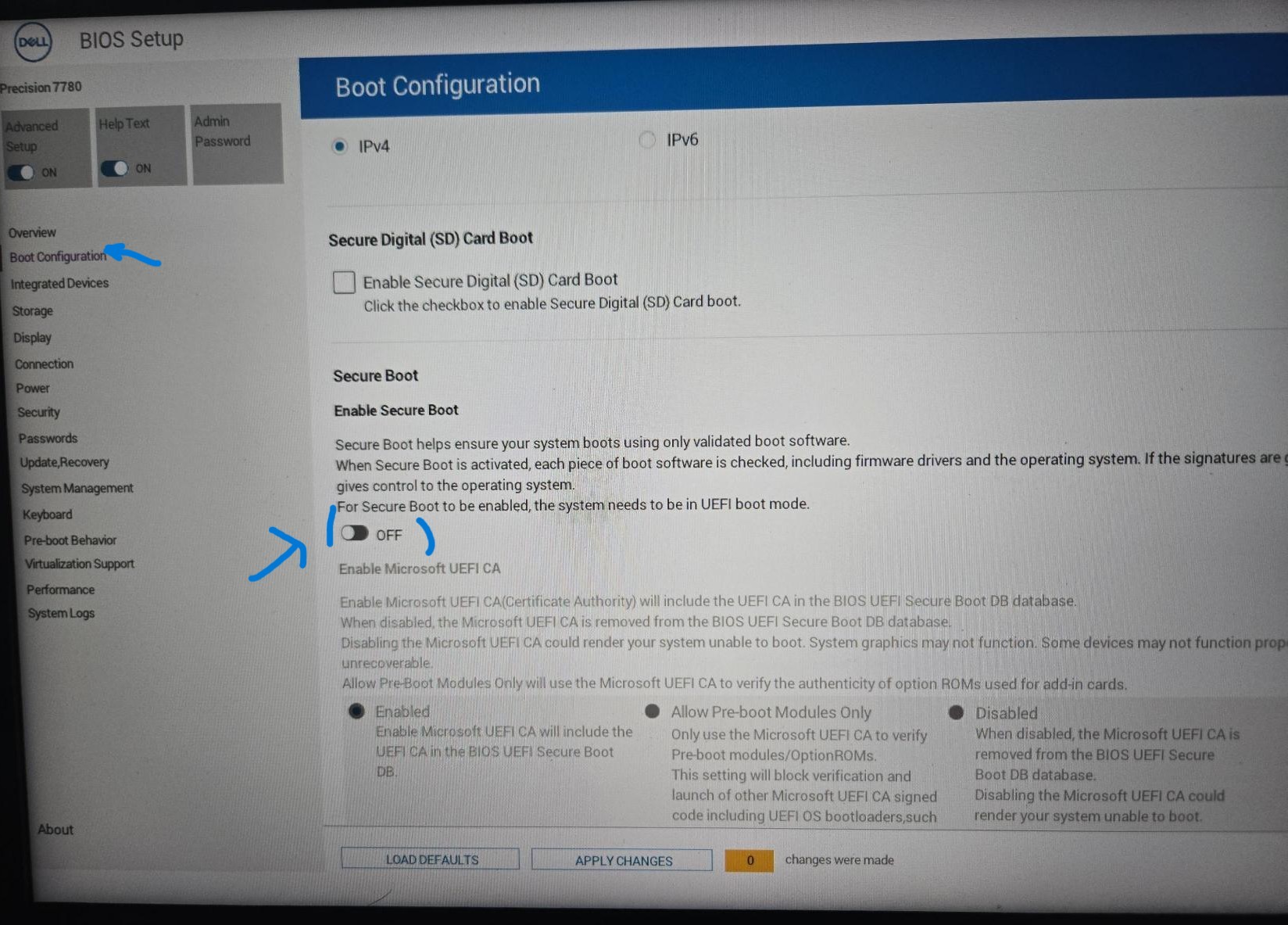 - Turn off secure boot